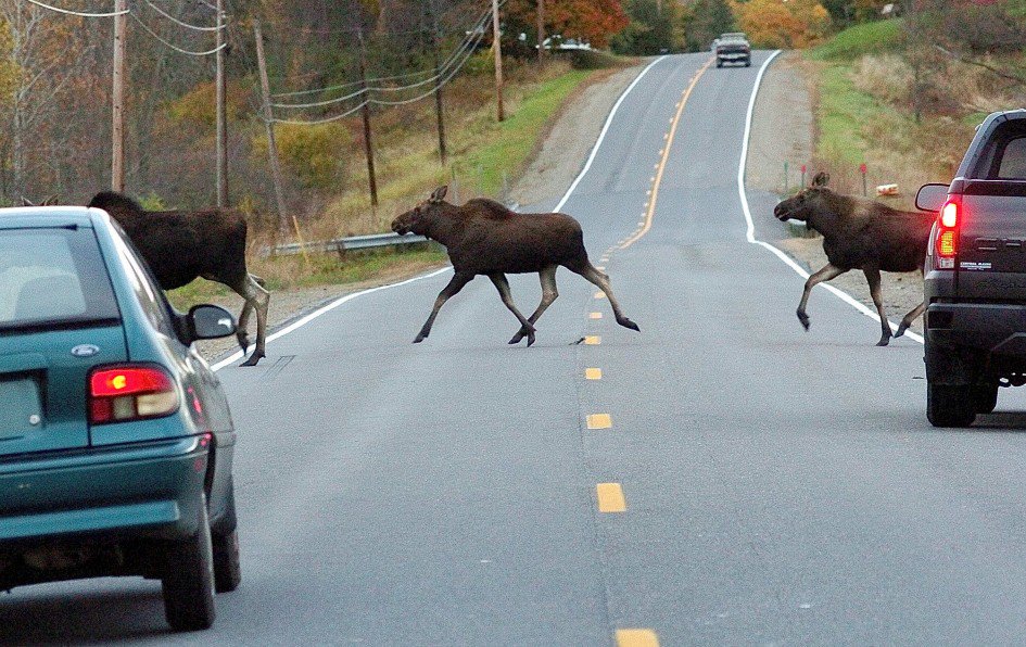 There were 305 car crashes involving moose throughout Maine in the year ending Sept. 1, 2016.
