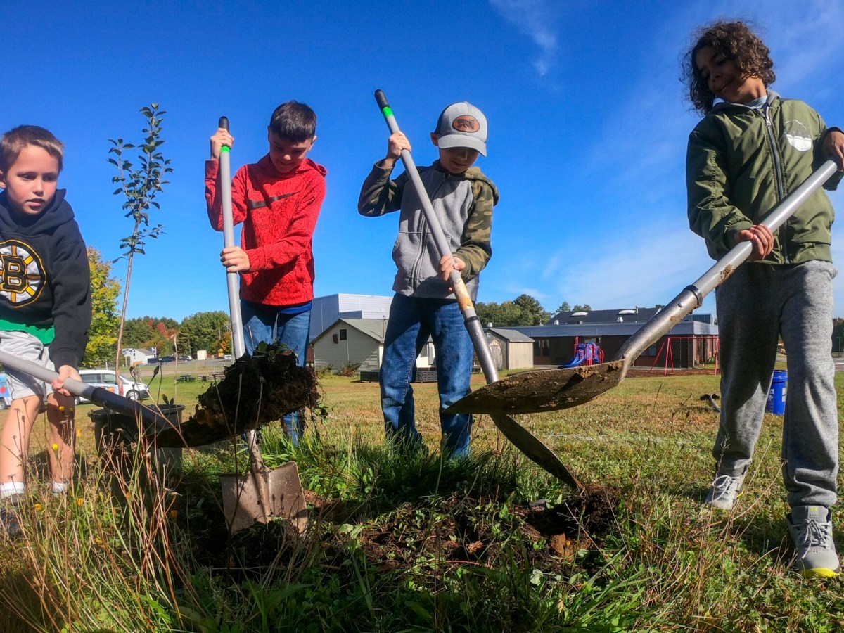 Watch: Windsor Elementary School students leave their mark in the soil after planting a dozen fruit trees