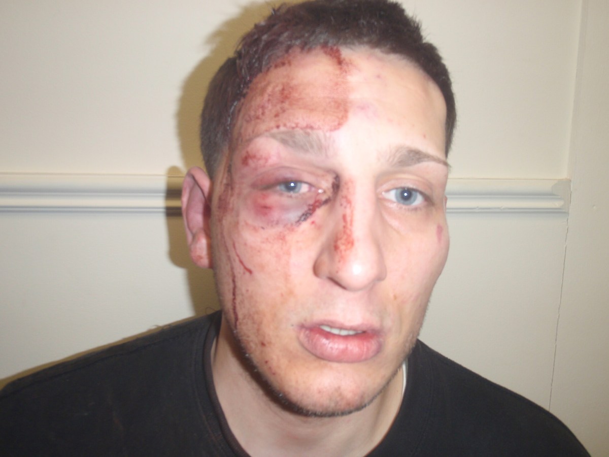 Kenneth Evers, 33, bloodied in fracas on Ginger Avenue early Thursday.