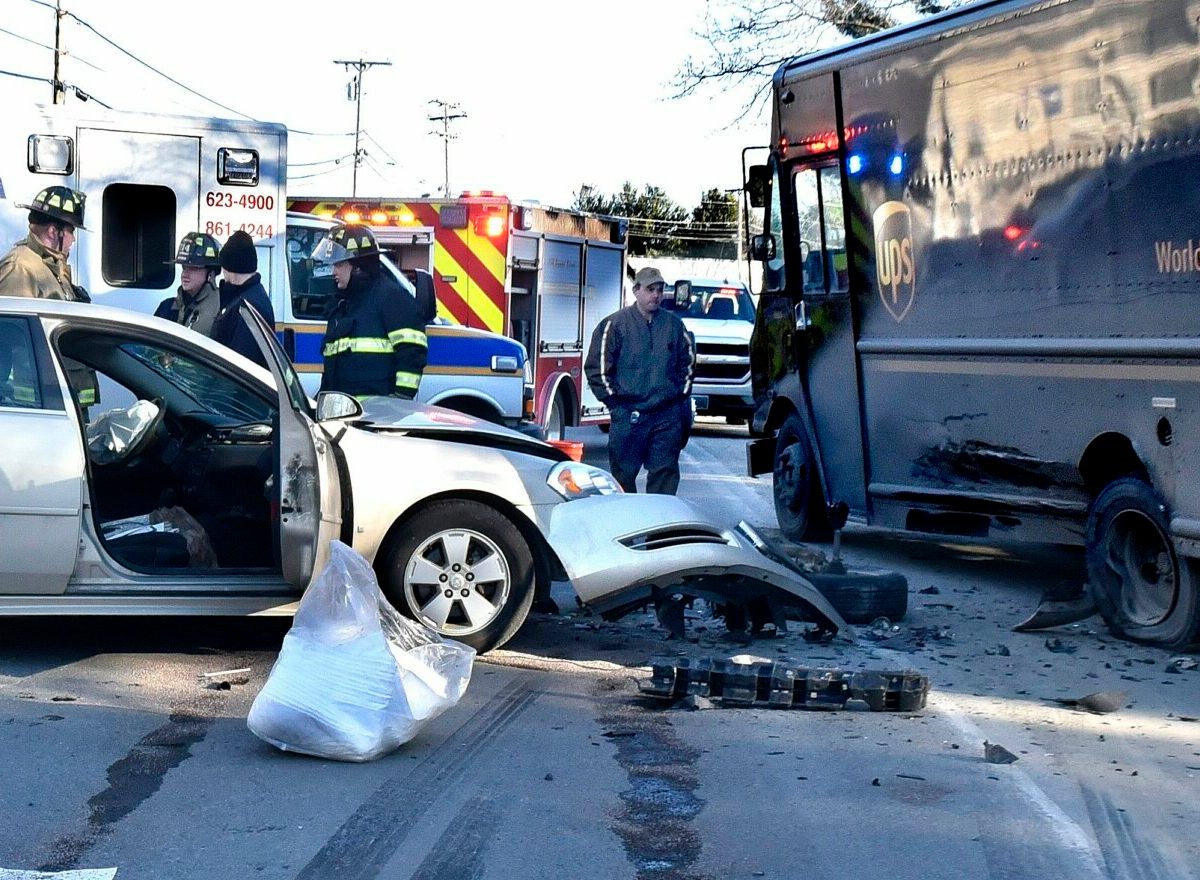 The driver of a Chevrolet Impala was taken to a local hospital Monday afternoon after colliding with a UPS truck on China Road, police said.