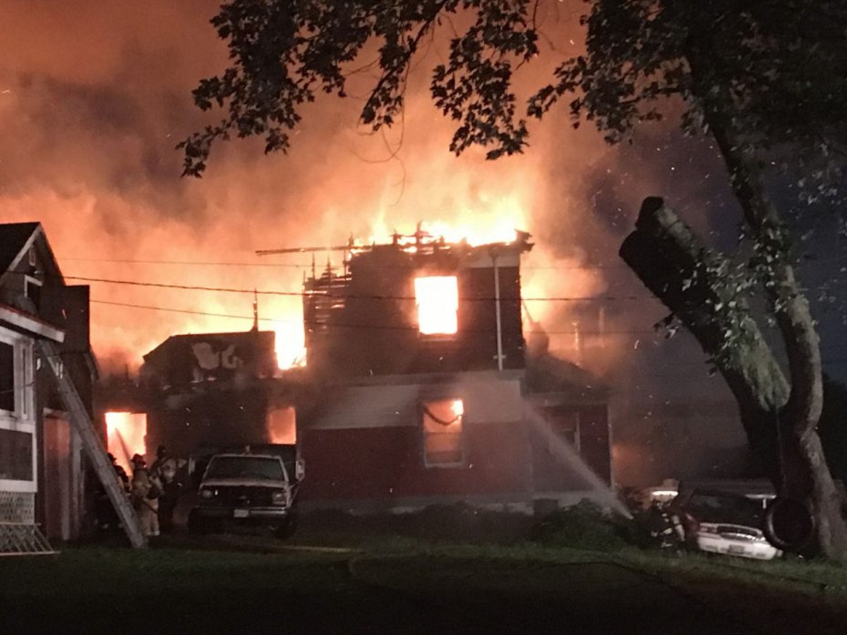 The 2½-story home on Hall Road – formerly a social center known as Sebenoa Hall – was occupied by a couple and their dog, but they made it out safely.