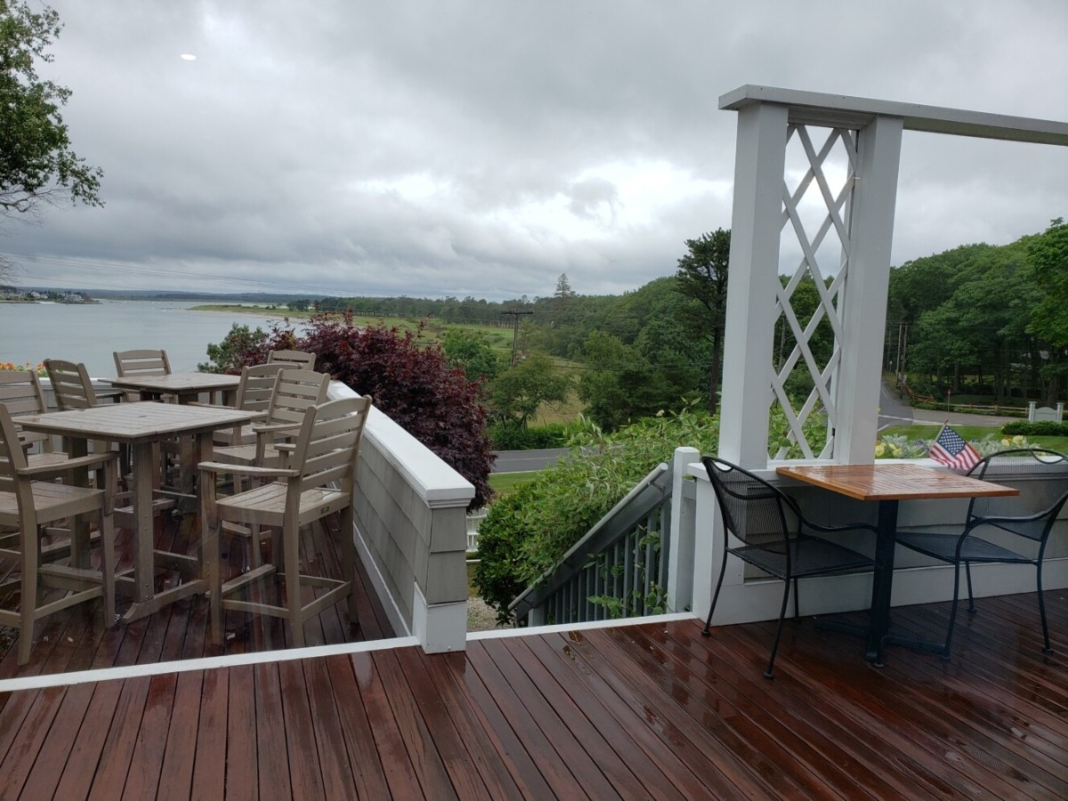 Sitting outside at the pub at the Black Point Inn in Scarborough is optimal.