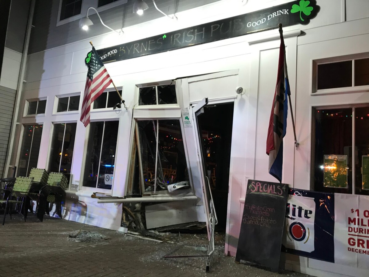 Byrnes Irish Pub had to close for repairs after a car ran into the doorway of the restaurant Sunday but reopened on New Year’s Day.